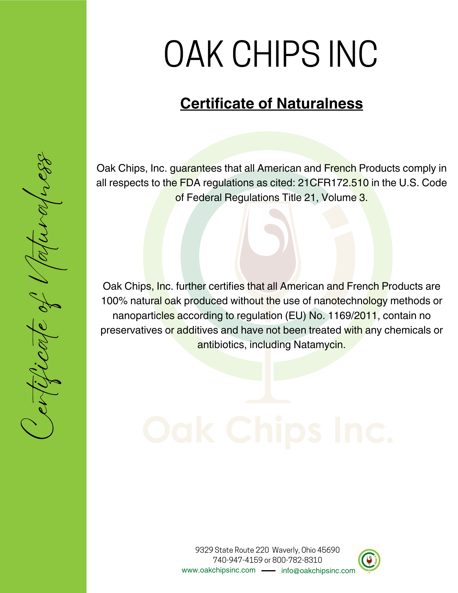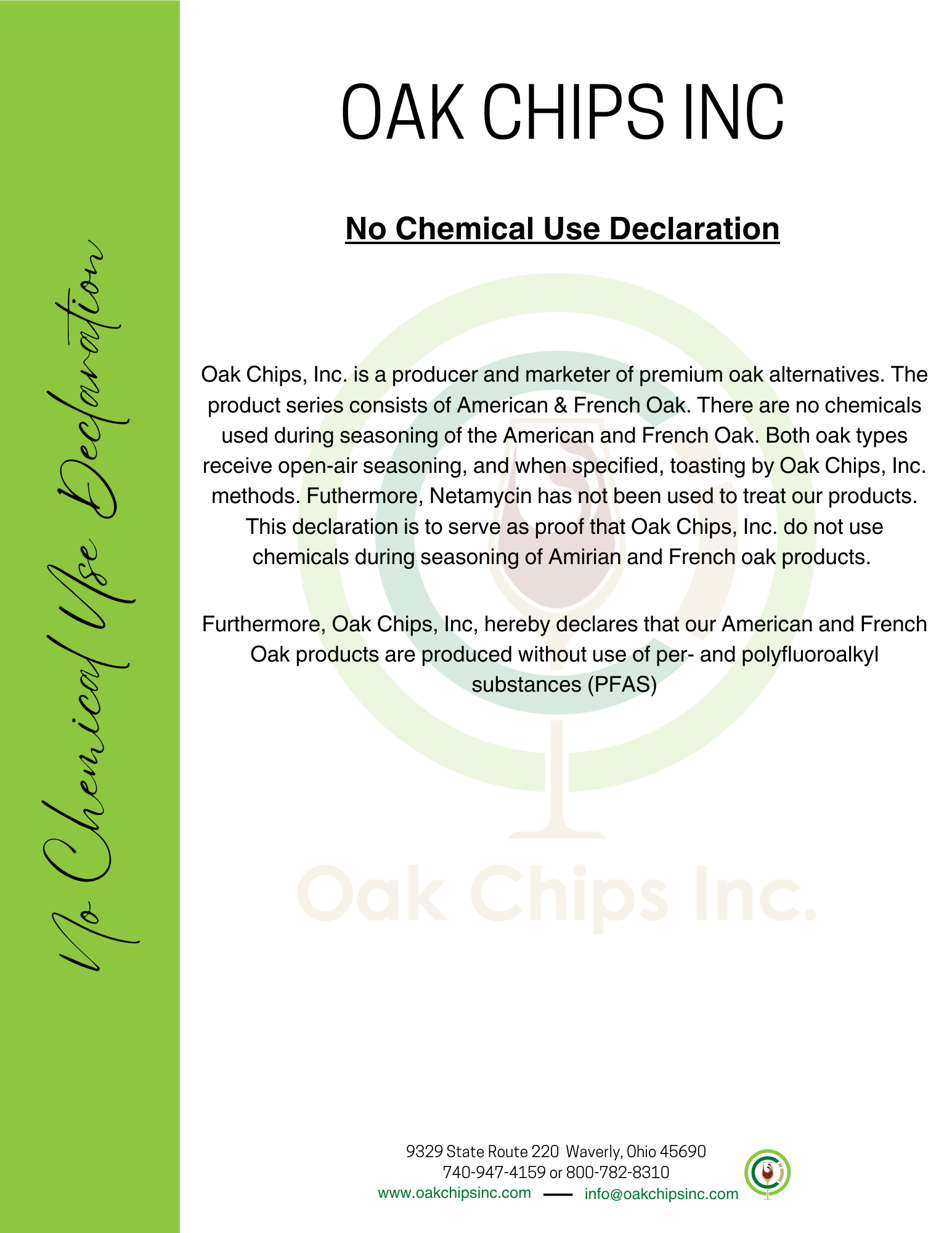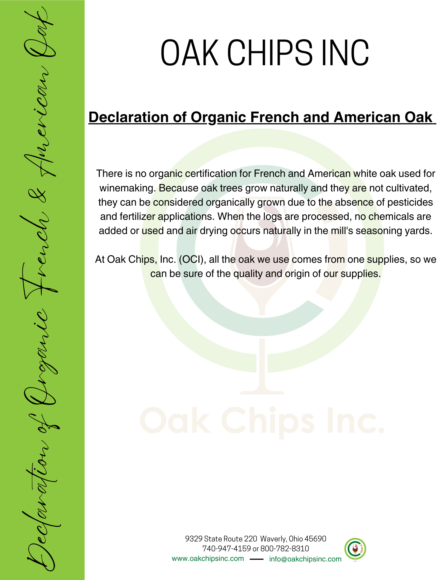 Declaration of Organic French & American Oak