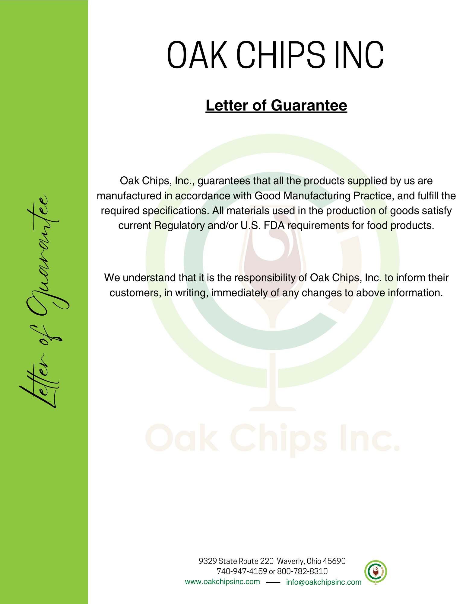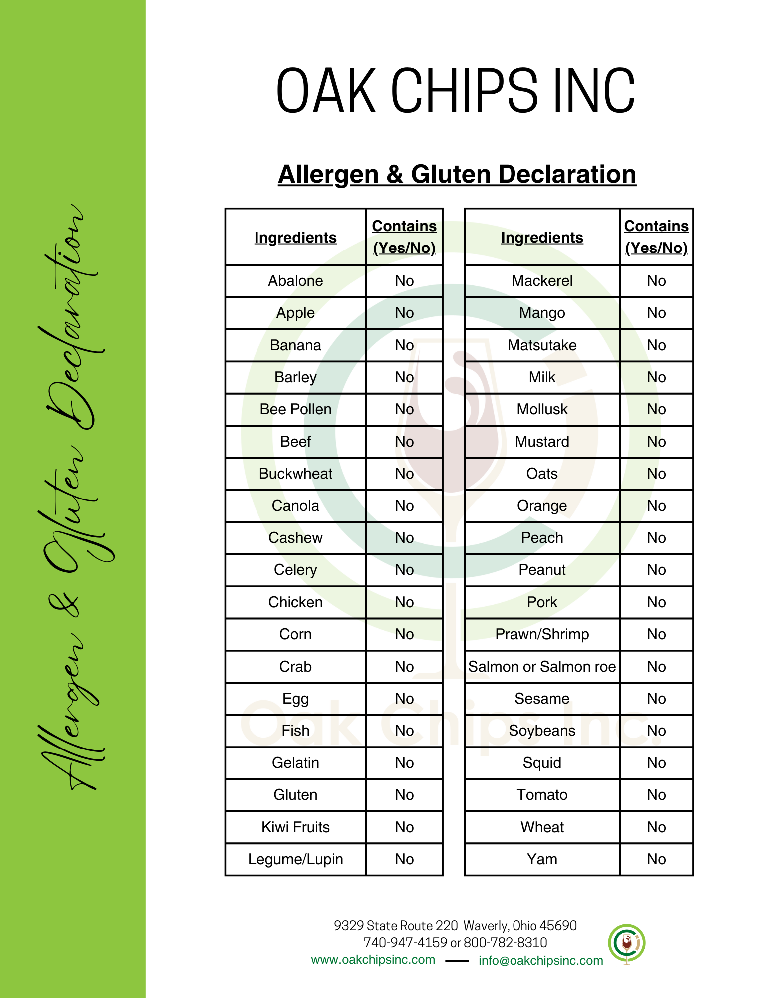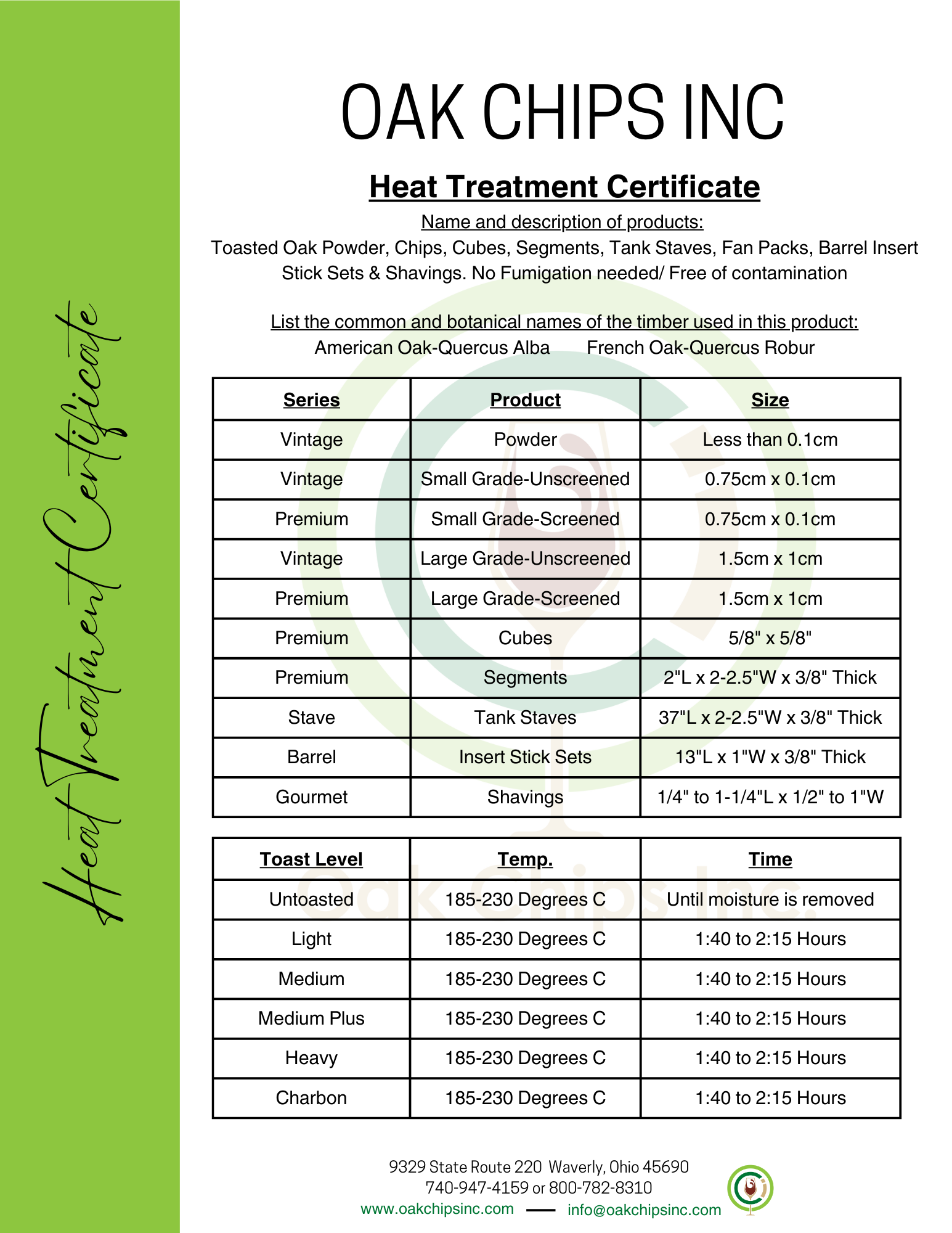Declaration of Organic French & American Oak