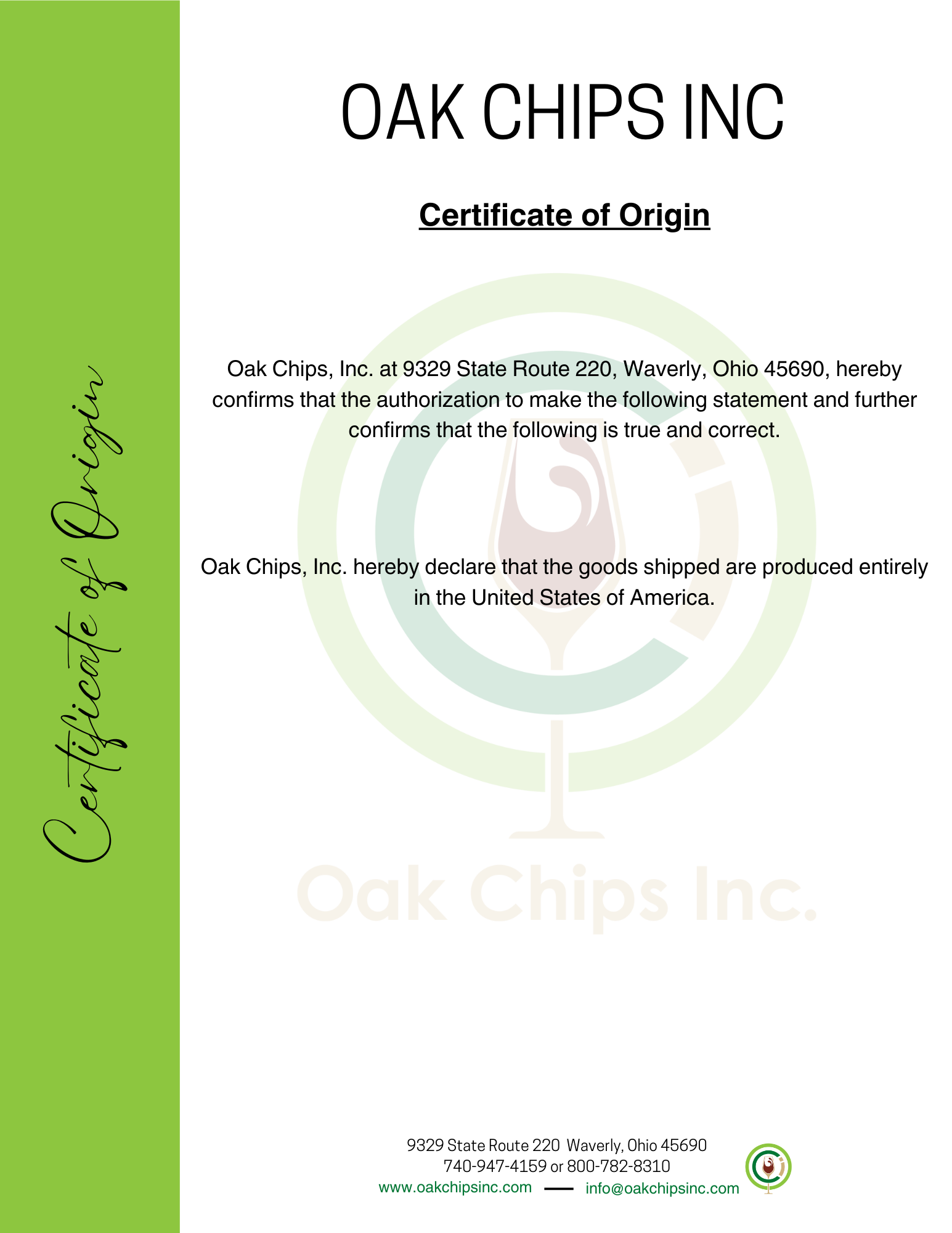 Certificate of Origin